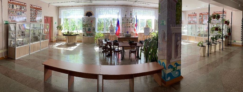 Музей оборудован тремя высокими демонстрационными витринами, в которых представлены творческие работы учащихся.