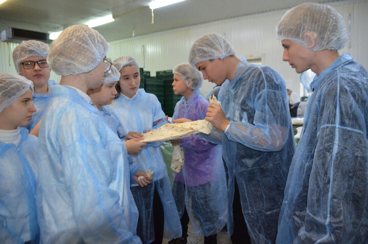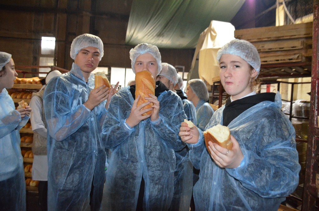 Уже с порога комбината экскурсантов окутал неповторимый аромат свежеиспечённого хлеба. Под чутким руководством сотрудников хлебокомбината школьники прошли по всем производственным участкам.