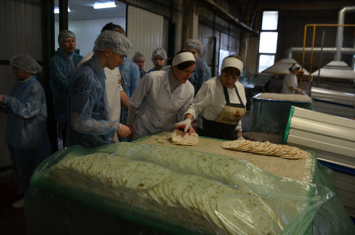 Увидели ребята и участок упаковки, где готовые изделия получают «одежду» перед отправкой в магазины. Особенно ребят впечатлил момент, когда им разрешили попробовать свежеиспечённые лаваши. Их невозможно было держать в руках, такими они были горячими. Но невероятно вкусными!