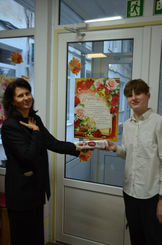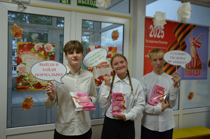 А в пятницу, 3 октября 2025 года, в самый канун праздника учащиеся у порога школы встречали педагогов, чтобы поздравить наставников с Днём учителя и вручить сладкие подарки. Положительные эмоции лились через край!